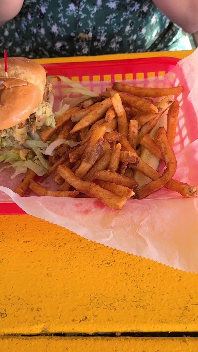 Waterfront restaurant with seating indoors and outside near the water in Essex, MD. A restaurant that sits near the water. Frequented by locals and visitors alike. This was our first time visiting for lunch. Very few people, a few inside. We choose benches by the water. An appetizer of spicy fried green beans and sweet tea. Our waitress Jessica was very attentive as she was manning the bar and customers inside as well the customers outside. The green beans were crispy and with a little kick served with a spicy side sauce. Would recommend. Price 9.00 The main entrees, We had the soft crab sandwich on wheat with lettuce, tomato and mayonnaise with spicy fries substitution for the honey bbq chips for additional 3.00. Total price 19.00. The other entree was the teriyaki salmon over rice with broccoli. Cost 17.00. Prices are very reasonable. There are daily specials. The sweet tea was a ok , nothing to brag about. The portions were large. The soft crab was very tasty. Large size. Highly recommend Will return to this location
